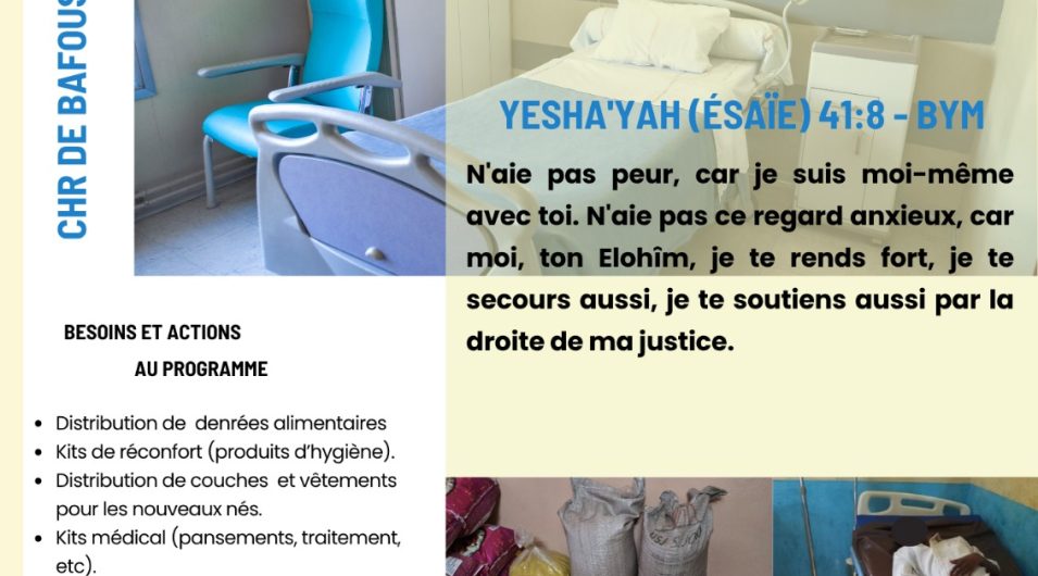 L’Association La Main de YAHWEH organise une importante mission humanitaire au Centre Hospitalier Régional de Bafoussam, afin d’apporter soutien et réconfort aux patients et familles en situation de vulnérabilité.